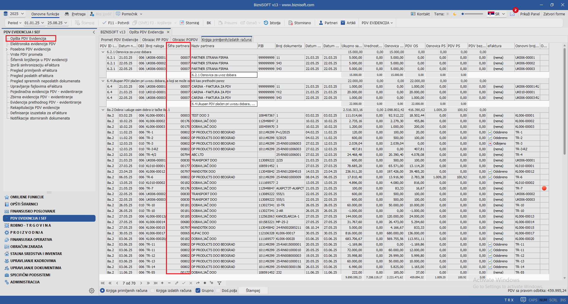 Implementirana je nova kolona Šifra partnera u tabeli Knjiga primljenih/izdatih računa: