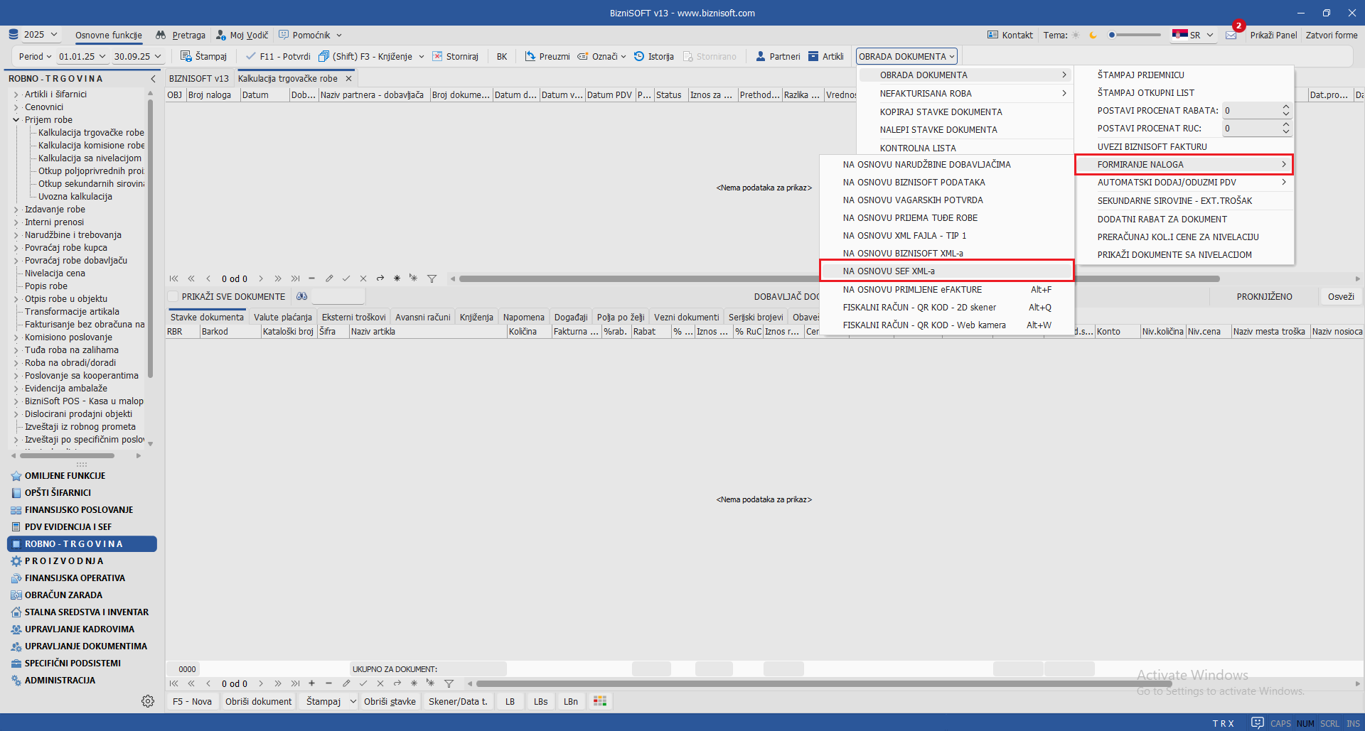 Omogućeno je formiranje ulaznog dokumenta na osnovu SEF xml-a analogno funkciji formiranja izlaznog dokumenta na osnovu SEF xml-a: