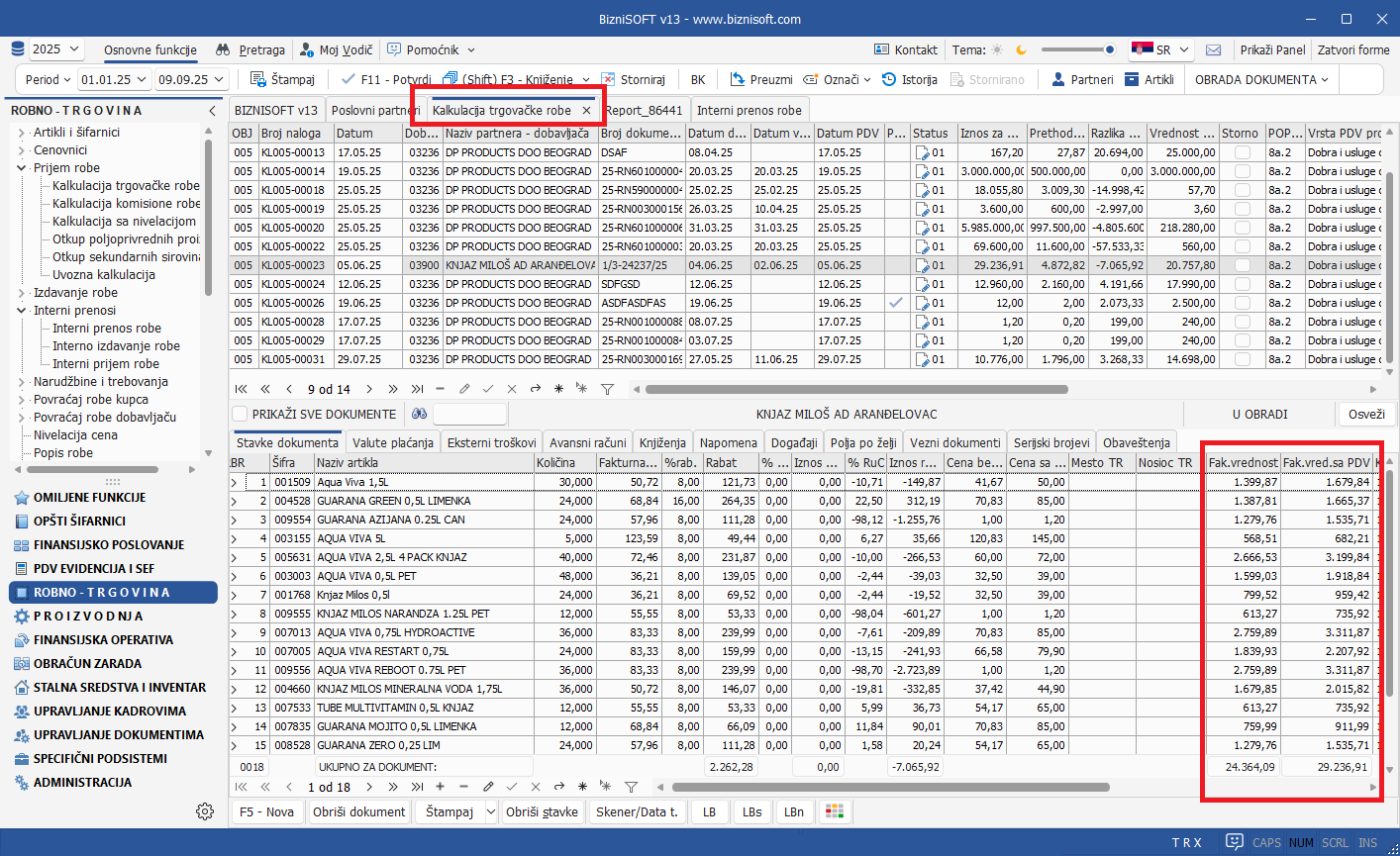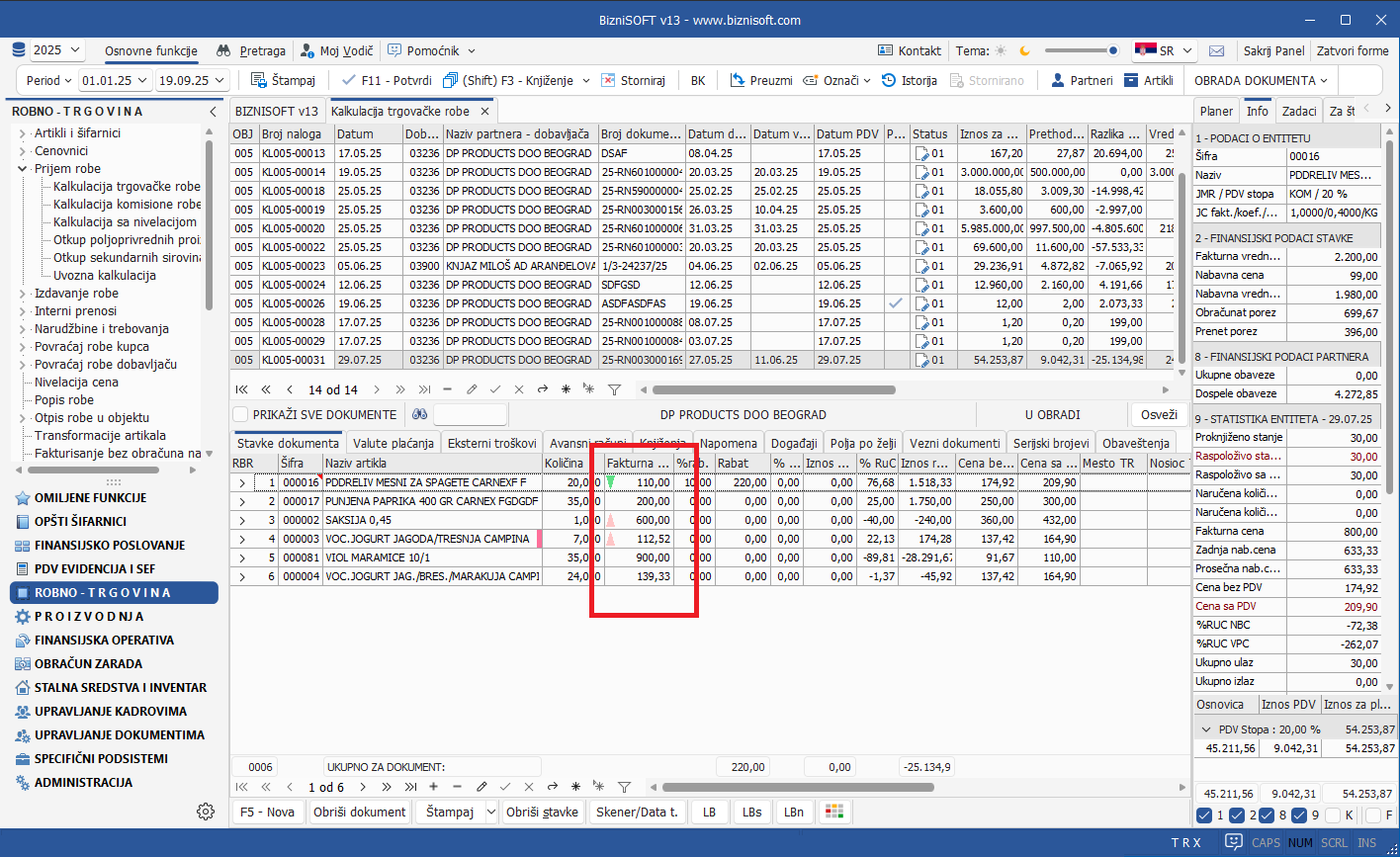 U formama Prijem robe implementirana je nova kolona Fak. vrednost koja prikazuje fakturnu vrednost bez PDV. U odnosu na prethodne verzije programa, kolona Vrednost po fakturi je preimenovana u Fak.vred.sa PDV: