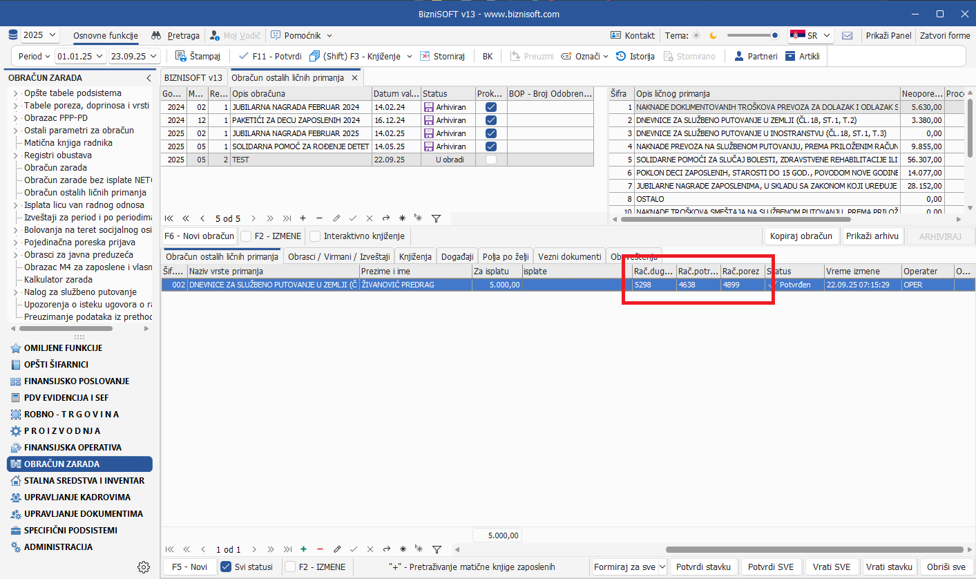 Omogućeno je ažuriranje konta u stavkama Obračuna ostalih ličnih primanja. Program će prilikom unosa stavke obračuna ponuditi konta koja su definisana za konkretnu vrstu isplate, ali će ona sada po potrebi moći da se menjaju: