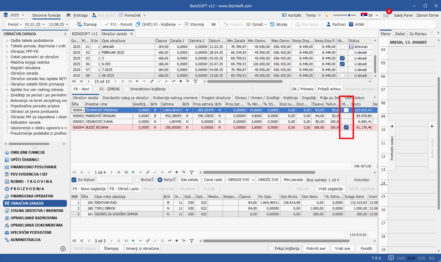 Uvedeno je posebno obeležje Maloletnik u stavkama Obračuna zarada za maloletna zaposlena lica na osnovu podatka iz kolone Datum rođenja iz Matične knjige radnika. Stavka obračuna će dobiti oznaku crvene boje kako bi signalizirala operateru da obrati posebnu pažnju prilikom obrade samog obračuna i adekvatno umanji časove rada (uz eventualnu korekciju iznosa):