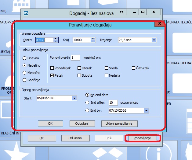 Dodata je nova interesantna mogućnost kreiranja tzv.„Ponavljajućeg događaja“. Ovo klijentima omogućava da kreiraju događaj/podsetnik koji će se ponavljati u unapred definisanom vremenskom intervalu (recimo: svakog 5-og u mesecu da program obavesti da treba izvršiti određeno plaćanje, svakog 15-og u mesecu da treba da se pošalje PPPDV prijava i slično).