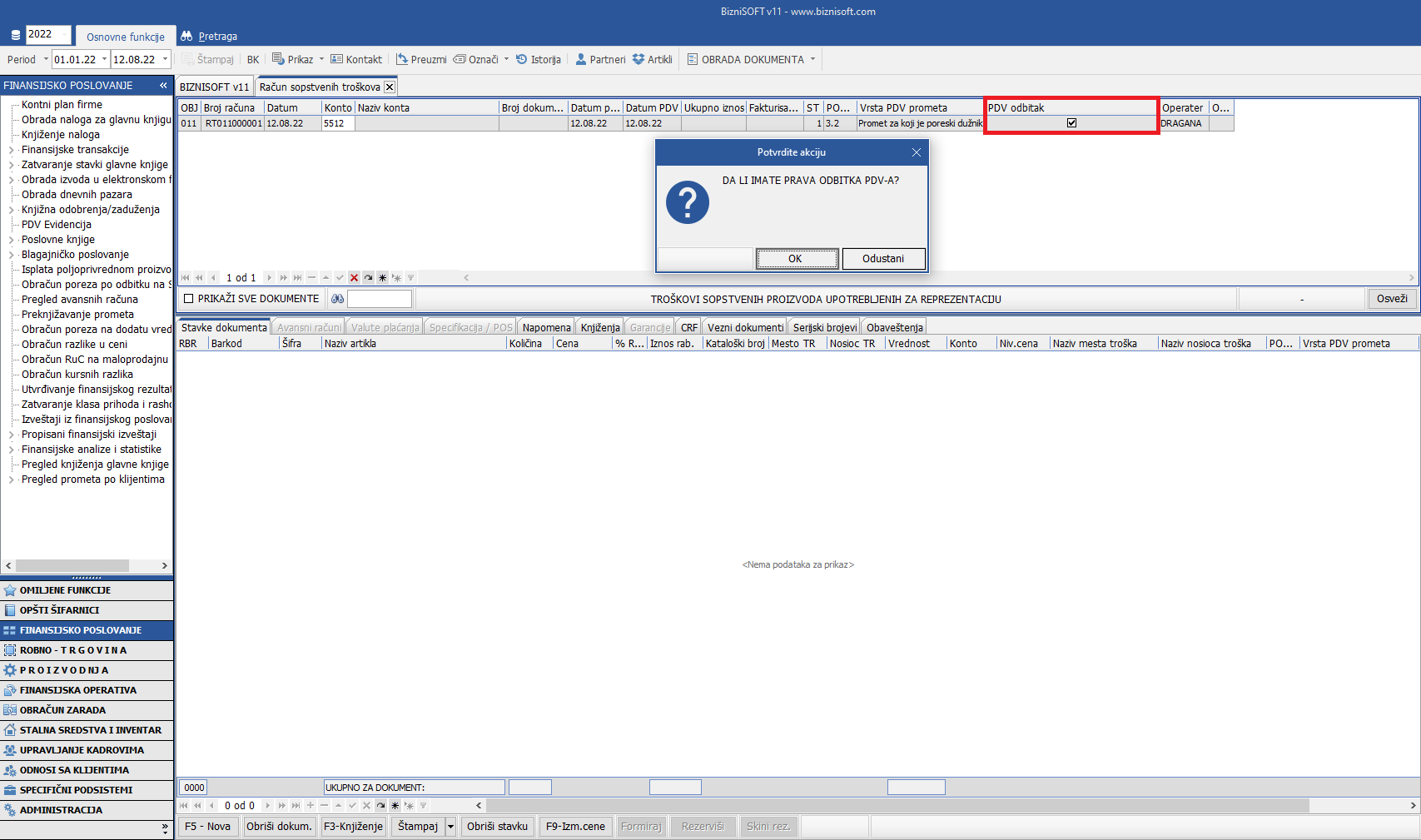 Kako ne bi došlo zabune, s obzirom da je ova vrsta transakcije drugačija od računa sopstvenih troškova, u formi [bluetext]Računa sopstvenih troškova[/bluetext], polje PDV preimenovano je u [bluetext]PDV odbitak[/bluetext]: