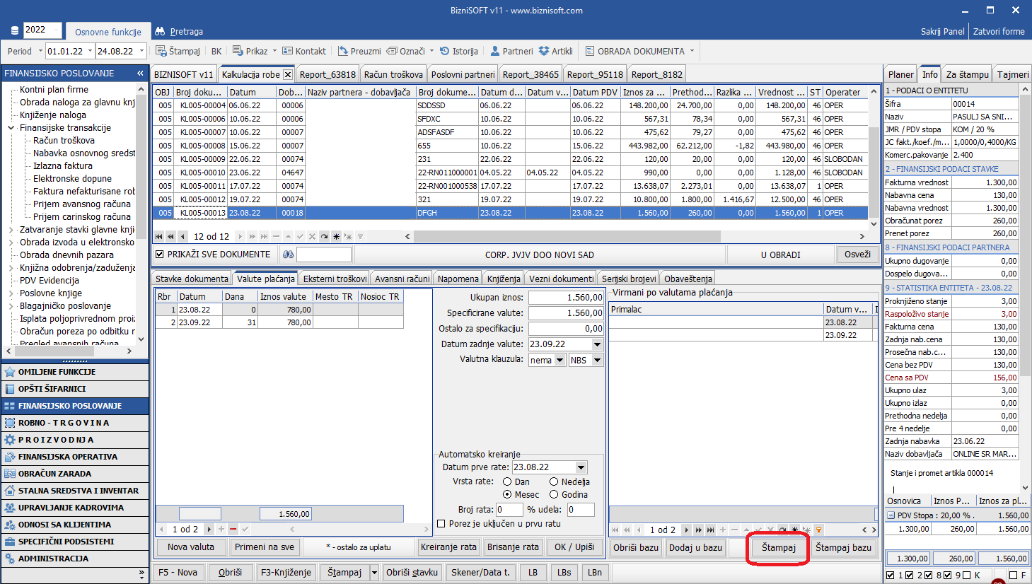 Implementirane su nove forme obrazaca [bluetext]Naloga za prenos/uplatu/isplatu[/bluetext]. Osim pomenutog, impelmentirano je novo polje [bluetext]Štampaj[/bluetext] u delu [bluetext]Virmani po valutama plaćanja[/bluetext] čime je omogućena štampa virmana za pojedinačnu, selektovanu stavku u formi kalkulacija i u delu finansijskih transakcija (Računi troška, Nabavka osnovnog sredstva i sl):