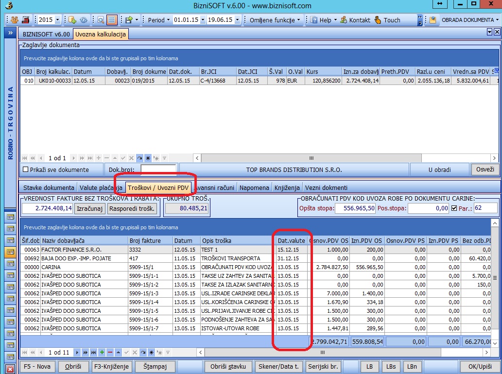 Uvozna kalkulacija – U delu specifikacije eksternih troškova, ubačeno je novo polje u kome je moguće definisati valutu plaćanja.