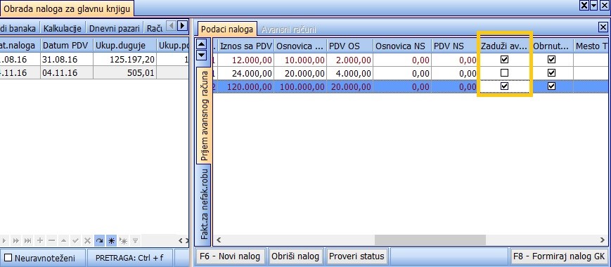 U obradi naloga glavne knjige je implementiran novi „HotKey“ za konfirmisanje naloga F9 – Konfirmiši.