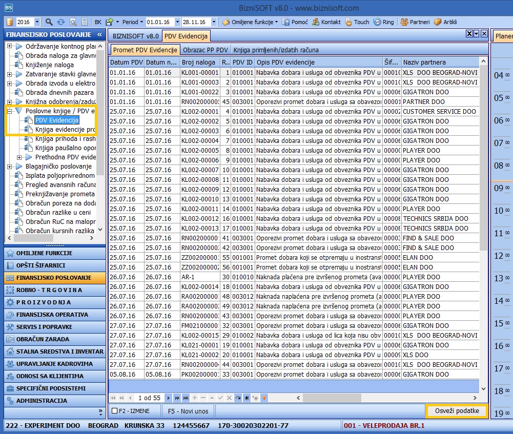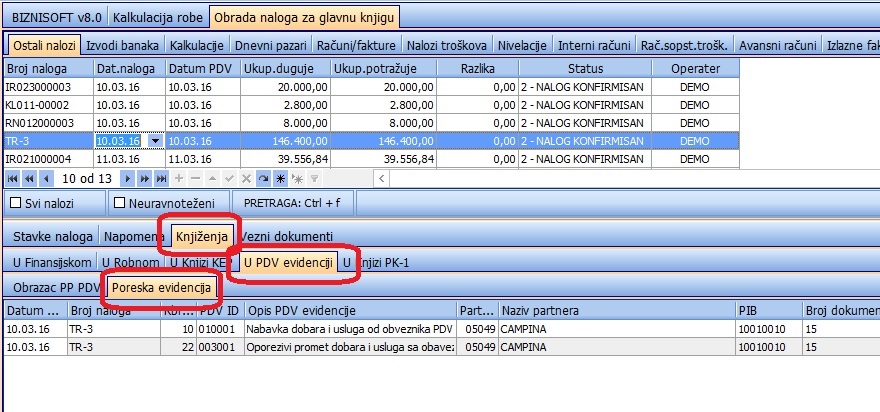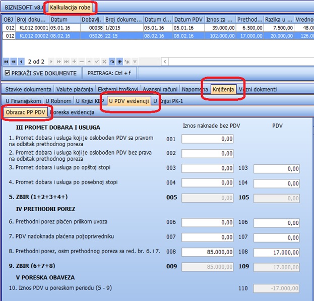 Modifikovan je prikaz knjiženja konkretnog BizniSoft dokumenta tako što se sada knjiženje transakcije u PDV evidenciji prikazuje u kontekstu PP PDV obrasca.