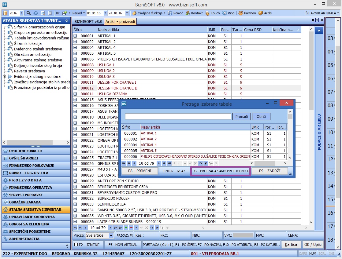 Omogućena je nova funkcionalnost, Univerzalna pretraga Taster – F12 koja pretražuje samo prethodno selektovanu kolonu. Ukoliko korisnik želi da se univerzalnom pretragom pretražuje samo jedna kolona (navodimo čest primer: broj naloga u spisku naloga glavne knjige), potrebno je da klikne mišem na bilo koje polje u tabeli koje pripada toj kloni, pa nakon toga prečicu za pretragu CTRL – F. Time se otvara forma univerzalne pretrage, u okviru koje je moguće klikom na F12 vršiti pretragu F12 – Samo za prethodno selektovanu kolonu. Ovim smo dopunili funkciju Univerzalne pretrage promovisane u verziji 7.