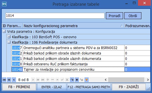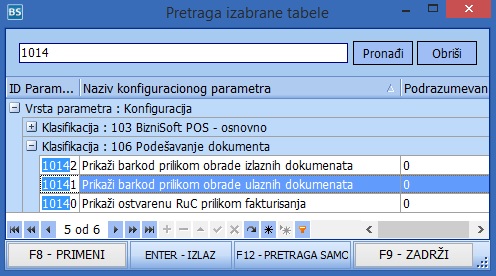 Izbačena je mogućnost podešavanja tabela u funkcijama obrade naloga glavne knjige prilikom obrade ulaznih i izlaznih dokumenta. Ova funkcionalnost je izbačena iz menija ali su dodati novi konfiguracioni parametri 10141 i 10142 kojim se može definisati prikaz polja „barkod“ u ovim tabelama.