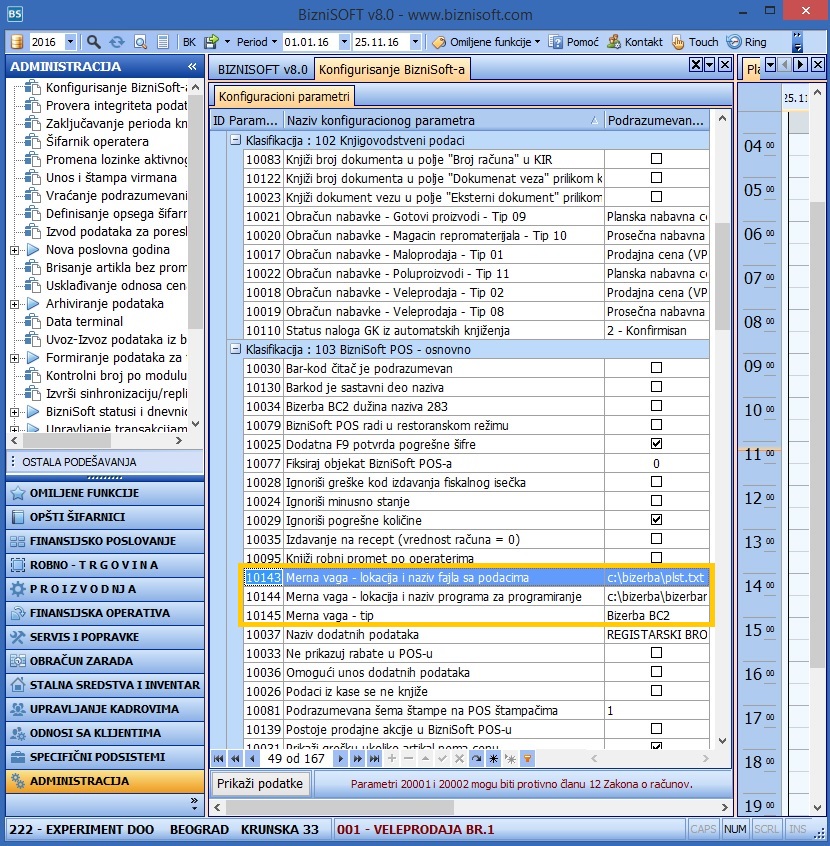 U kontekstu ovih novih parametra, izbačene su sve stavke iz menija u delu Robno – Trgovinskog poslovanja – BizniSoft POS – Programiranje mernih vaga i zamenjene jedinstvenom procedurom koja radi u skladu sa definisanim parametrima.