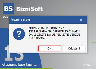 Instalacijom najnovije verzije BizniSoftu na vašem računaru, obavezno je da svi ostali korisnici u preduzeću prilikom ulaska u BizniSoft takođe prihvate ažuriranje.