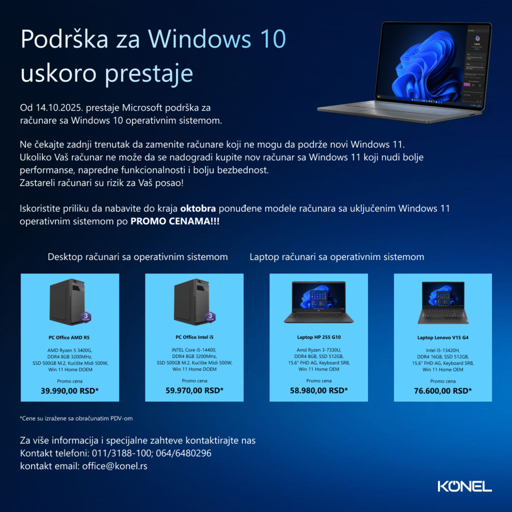 Kako bismo vam olakšali prelazak na noviji i sigurniji Windows 11, koji zahteva savremeniji hardver, obezbedili smo posebnu ponudu računara u saradnji sa našom partnerskom firmom.